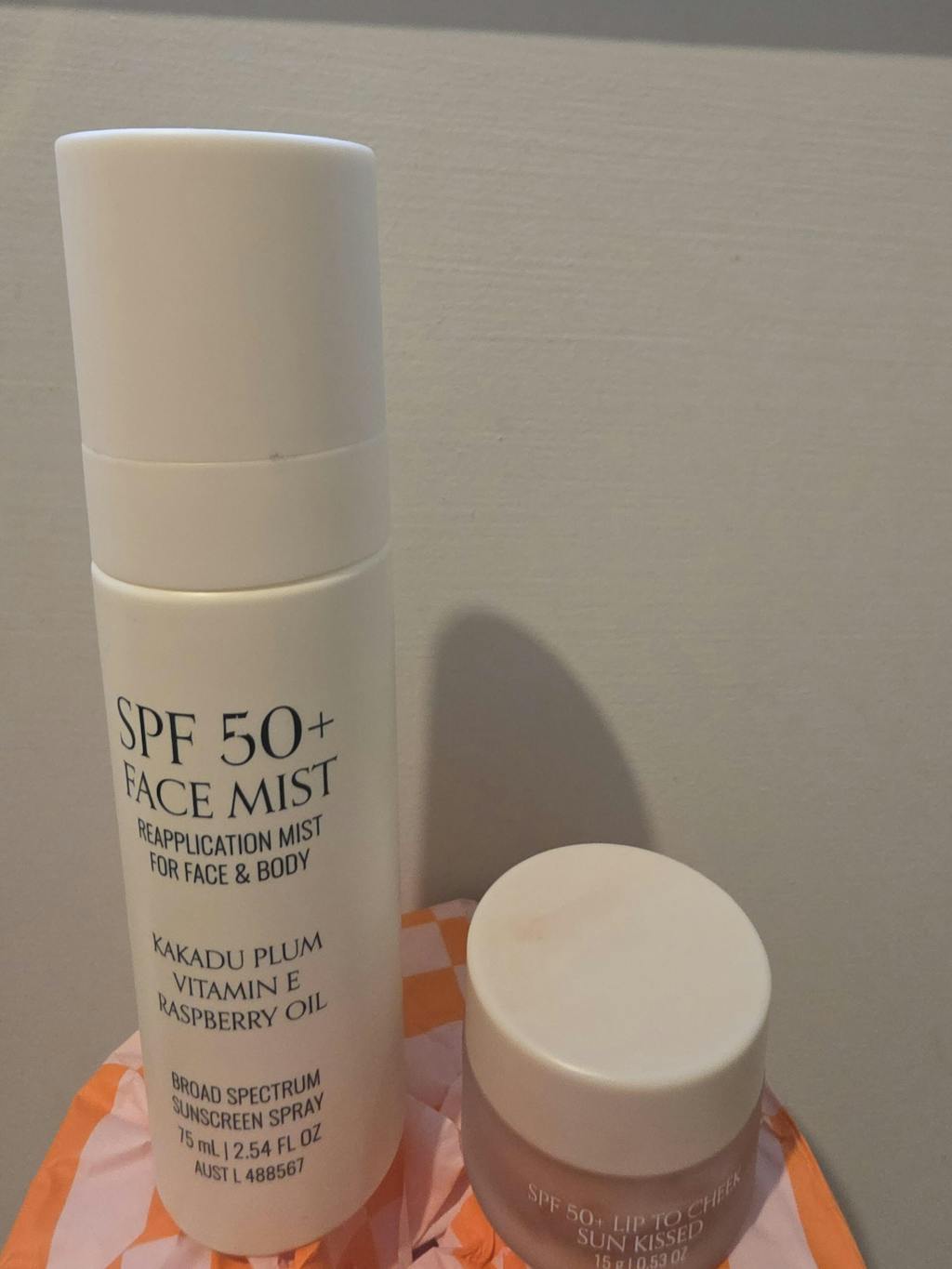 Topping up your SPF protection throughout the day has never been easier with our bundle of best selling products. The SPF50+ Face Mist is specially formulated with native Australian botanicals, and dries 100% clear making it suitable for all complexions, all seasons. Kakadu plum, vitamin E and raspberry seed oil refresh and protect your skin against harmful UV rays in just a matter of seconds. The SPF50+ Lip to Cheek is a mineral-based, physical barrier sunscreen with added tint to double as a moisturising balm for your lips and cheeks. Cocoa butter and vitamin E pair with zinc oxide to nourish and protect, in a specially formulated universally-flattering shade. Proudly made in Australia and 100% cruelty free, our best-selling SPF50+ Lip to Cheek is available while stocks last.